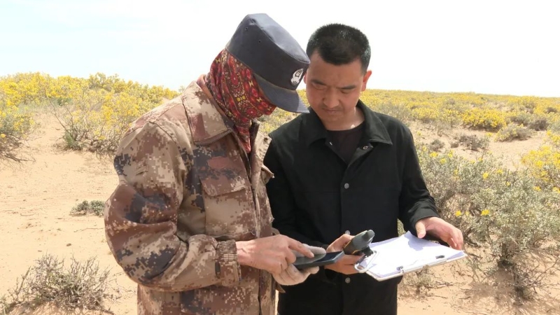 腾格里额里斯镇查拉格尔嘎查公益林区护林员李淑霞:我们日常穿梭巡护这些区域,查看这些植物的生长状况,记录相关数据,同时防止人为破坏,看着他们蓬勃生长,防风固沙效果越来越好,周边环境也一天天改善,我们的心里就特别满足。