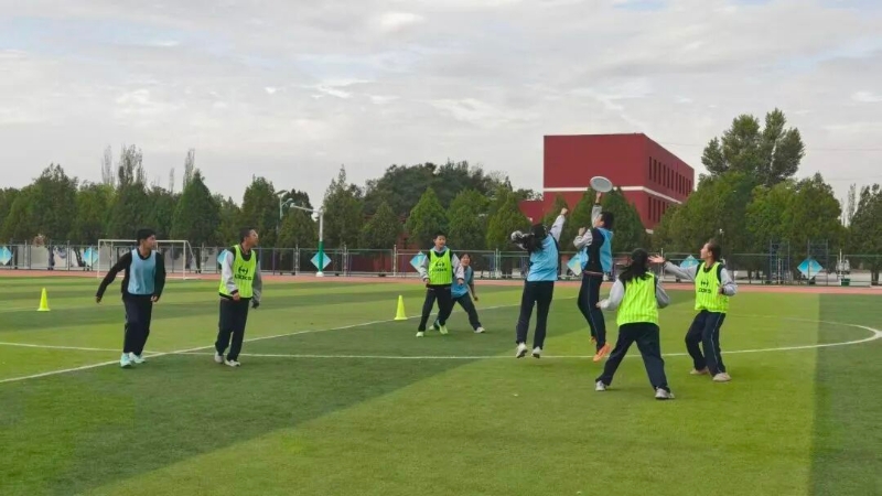 捐赠仪式结束后,“体育精神进校园”特色体育课随即展开,将“精神传递”与“实践体验”完美融合。课堂上,老师通过讲述奥运冠军的励志故事,生动诠释“团结、拼搏、尊重、进取”的体育精神,孩子们在学习和聆听中汲取奋进力量。在互动体验环节,充满活力的飞盘运动深受学生喜欢,赛场上,孩子们眼神专注,有的奋力挥臂投掷,有的灵活跑动接盘,队友间相互呼喊提醒、加油鼓劲。飞盘在空中划出的一道道弧线,不仅承载着孩子们的笑声与汗水,更让他们在协作中深刻体会到团队配合的重要性,在奔跑中感受到运动带来的纯粹快乐。